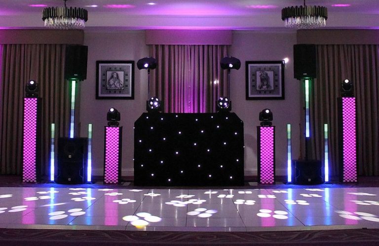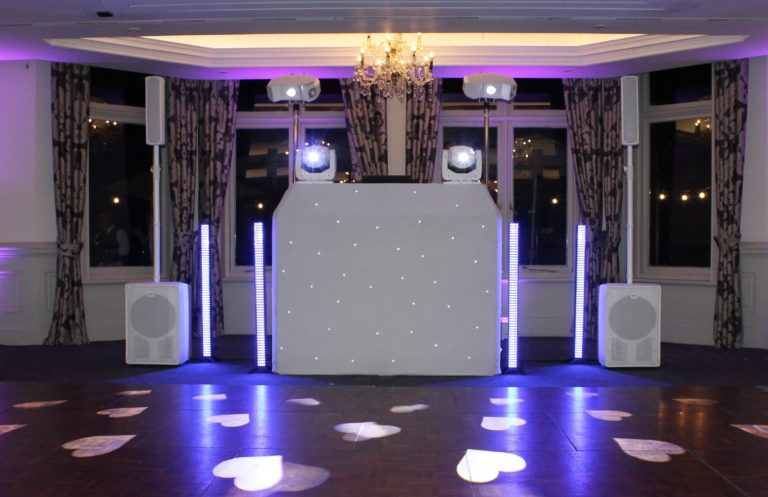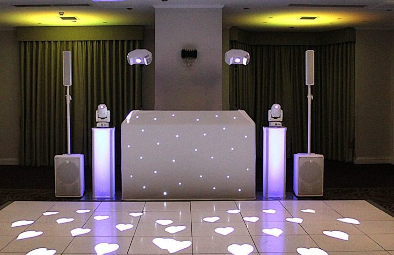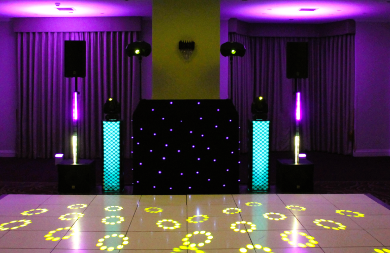 A great enhancement of the Classic package. Using a larger DJ booth, a sound system with more power, and some additional lighting effects to produce a smart looking and superb sounding set-up.